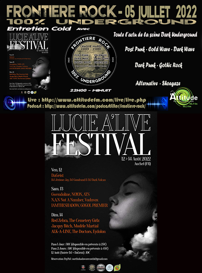 Frontière Rock 10 p.m. midnight every Tuesday and discover all the news of the world Underground scene: Post Punk – Cold Wave – Dark Wave – Gothic Rock – Shoegaze Ré listen to the Dark show of Tuesday July 5th, 2022 which goes up by clicking on the link below above.