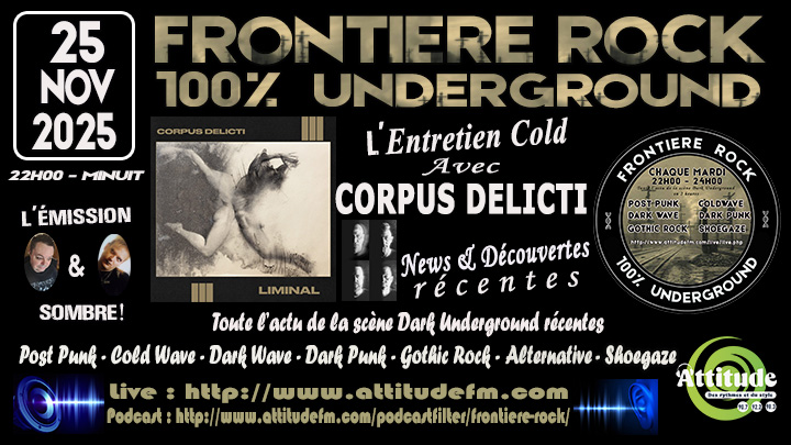 Frontière Rock 22h midnight every Tuesday evening from 22h to midnight, dive into the dark and alternative world of Dark, Alternative, Post Punk, Coldwave, Gothic Rock, Darkwave, Deathrock, New Wave, Dark Punk, Shoegaze music…
