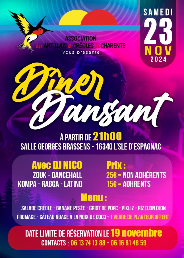 Ce samedi 23 novembre, dépaysement garanti, direction le soleil des Antilles à la salle Georges Brassens de l’Ise d’Espagnac avec l’association des antillais et créoles de Charente…