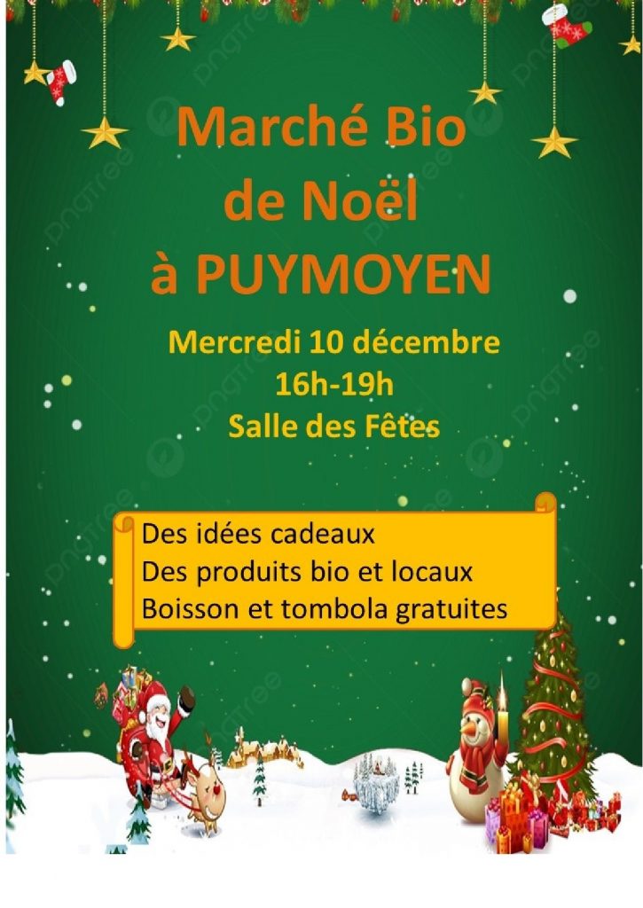 Ce mercredi 10 décembre, dans la salle des fêtes de Puymoyen à partir de 16h, c’est le traditionnel marché bio de Noel.